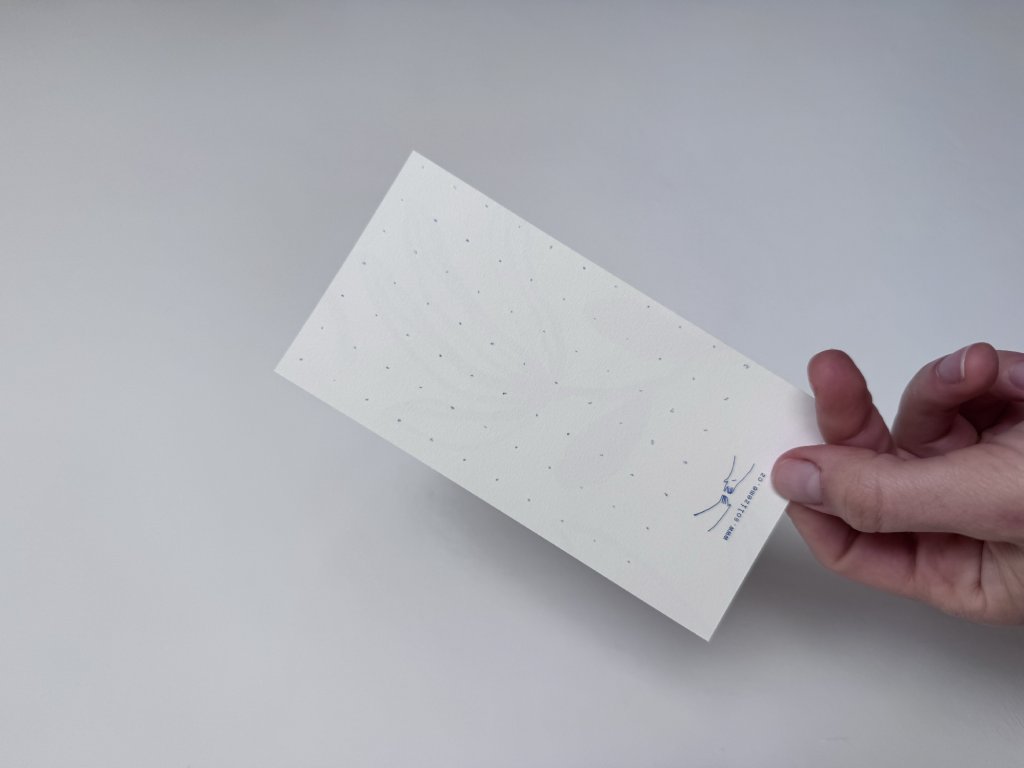 Záložka (8 x 15,5 cm) tištěná na ekologický nebělený grafický papír Munken Pure Rough v gramáži 300g.