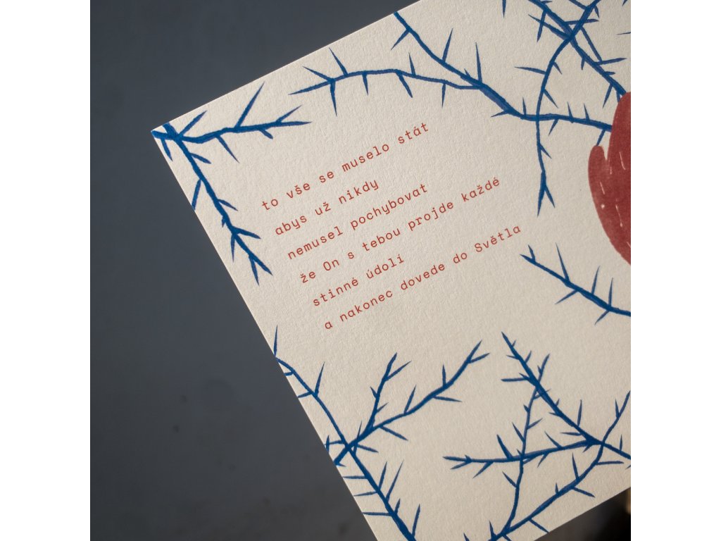 Pohlednice čtvercového formátu (14,5 x 14,5 cm) tištěná na ekologický nebělený grafický papír Munken Pure Rough v gramáži 300g.