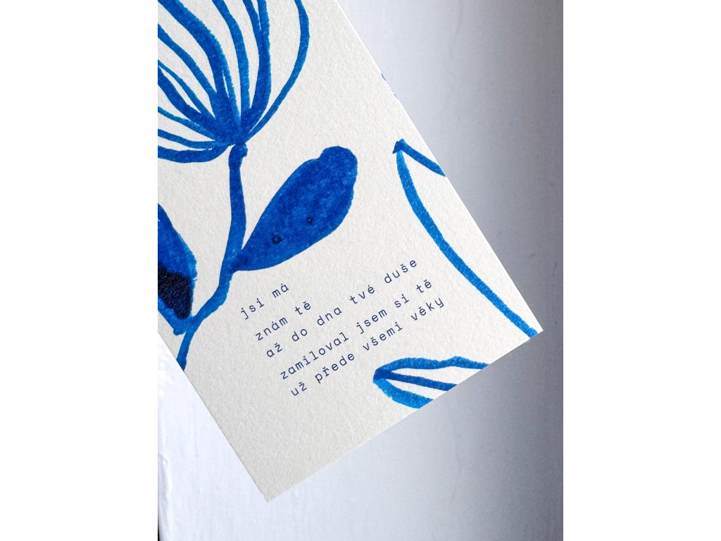 Záložka (8 x 15,5 cm) tištěná na ekologický nebělený grafický papír Munken Pure Rough v gramáži 300g.