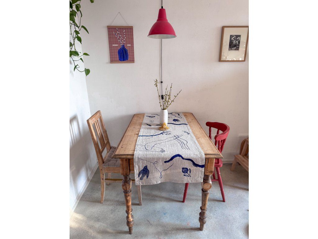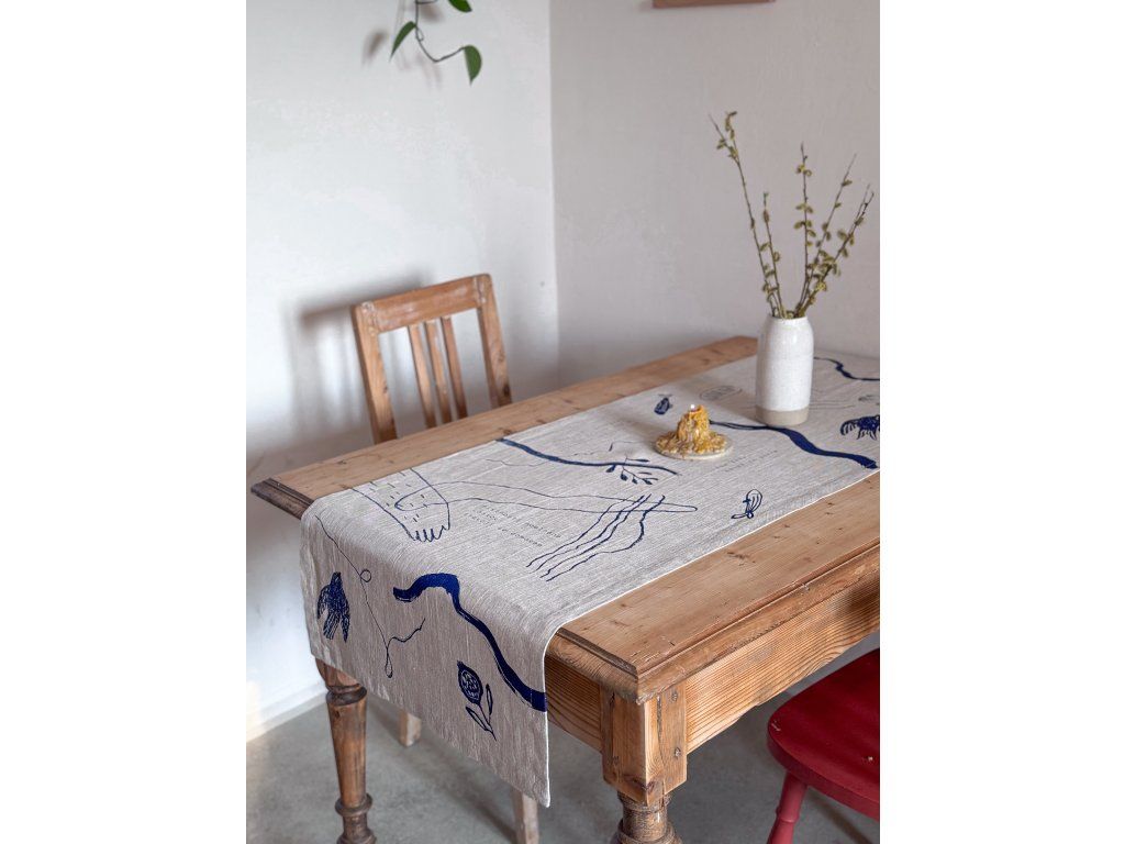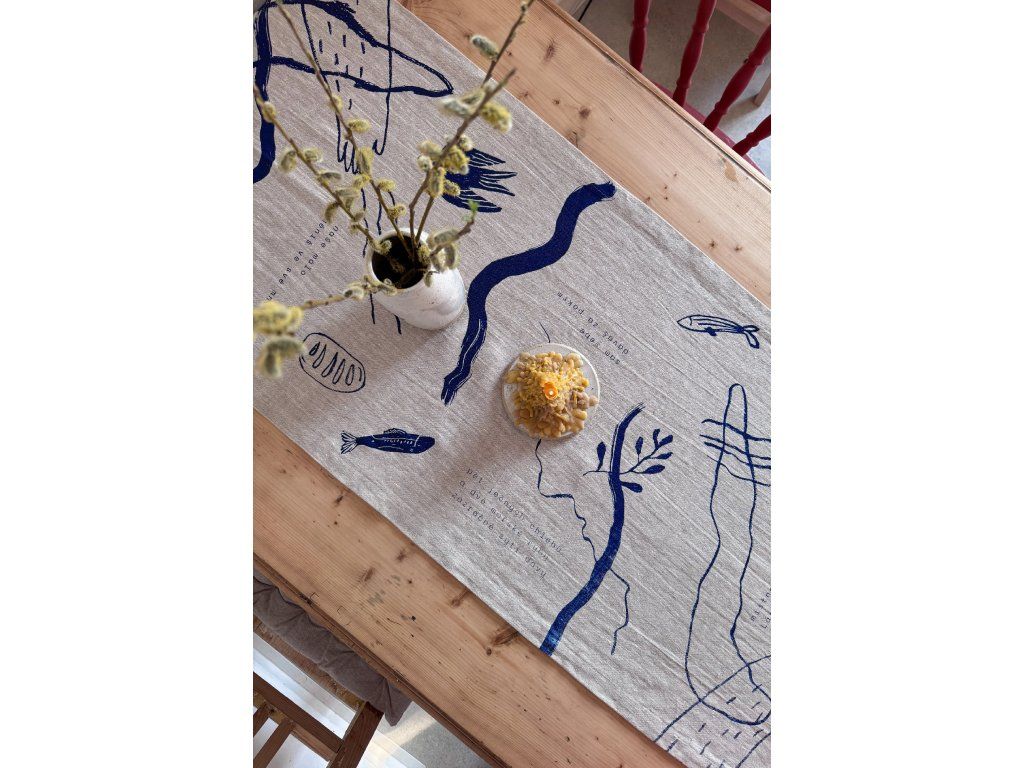 Vymyslely jsme si kousek, který chce tohle všechno ozdobit, oslavit, podtrhnout. A připomínat Toho, který chce k tomu stolu usedat s námi. Tak jsme poprosily ženy z ateliéru NOS!, jestli by do tohohle textilního dobrodružství nešly s námi. A začal vznikat příběh našeho běhounu.