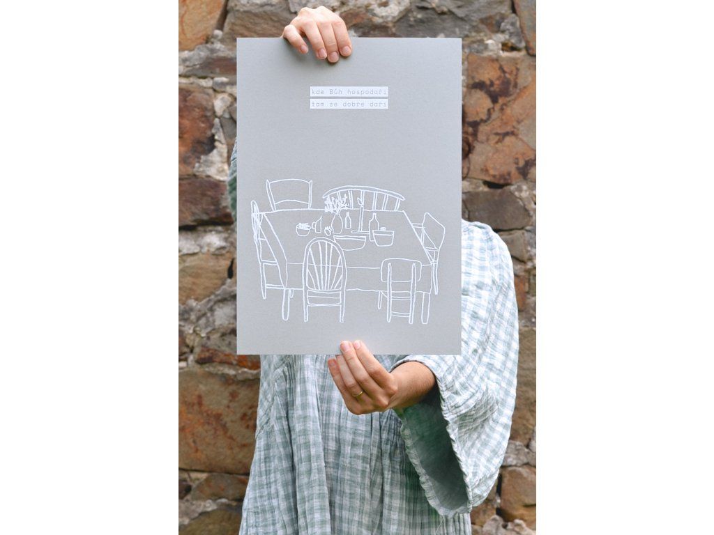 Jak často se v tom starém ukrývají zapomenuté poklady. A tak jsme se inspirovaly moudrostí takzvaných domácích požehnání a oblékly jsme je do soudobé grafické podoby. Plakát jako dárek na kolaudaci nového domova, nebo netradiční svatební dar. Kéž pohled na něj připomíná, koho chceme zvát do středu našich domácností.